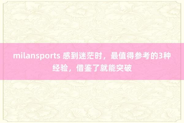 milansports 感到迷茫时,最值得参考的3种经验,借鉴了就能突破