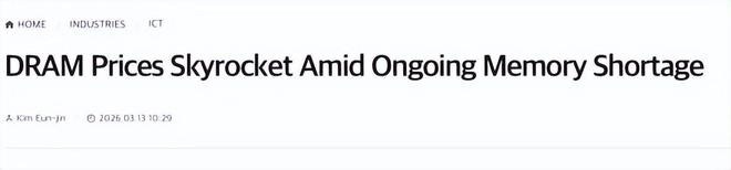 3月12日,CounterpointResearch在线上研讨会中公布数据:2月中旬至3月上旬,64GB做事用具DDR5规格RDIMM内存条价钱环比高涨150%;12GB出动端LPDDR5X内存价钱高涨130%;条记本电脑所用8GBDDR4规格SO-DIMM内存价钱高涨180%。NAND闪存产物价钱同步高涨130%至150%,涨幅创下历史新高。