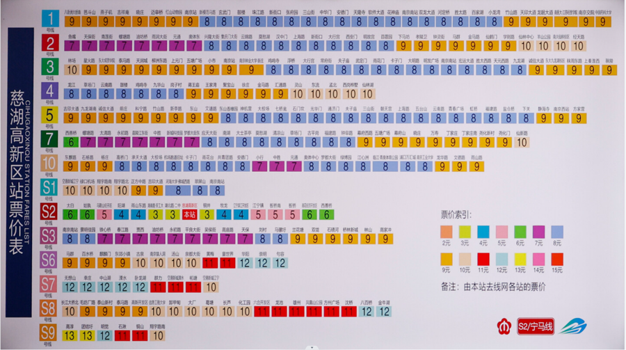 周末念念带娃去红山动物园?走,坐S2线。念念去新街口吃顿好的?走,还是坐S2线。跟着南京至马鞍山市域(郊)铁路(宁马城际铁路)票价表“上墙”,马鞍山与南京的“同城生存”只差一张市域车票的距离。