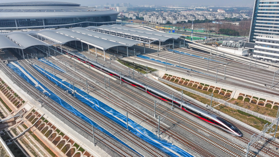 列车驶出上海松江站 陈梦泽 摄