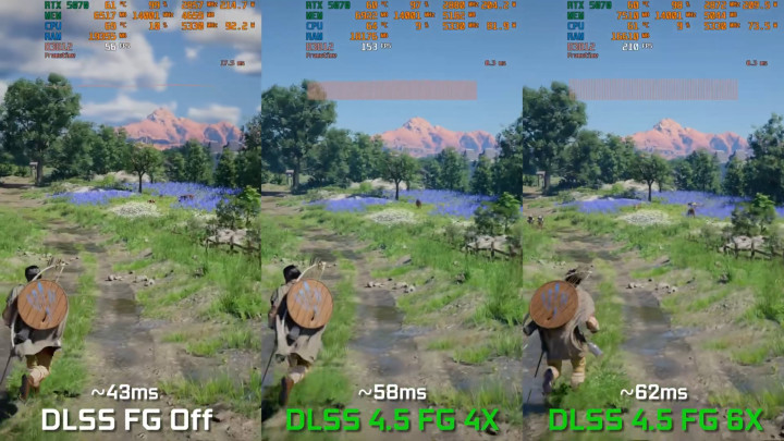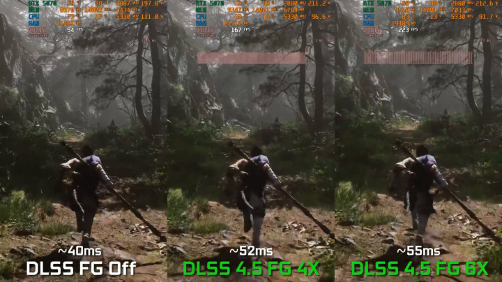 终末一款测试游戏是《黑传说:悟空》,手脚国产3A大作的标杆,这款游戏凭借细致的画面、丰富的剧情和畅达的战斗,深受玩家醉心,况兼游戏最新更新中引入了DLSS 4.5时期,支捏6X帧生成,开启全风景泽跟踪后,画面质感拉满,对显卡性能的条目也十分高,测试配置为2K最高画质、开启全风景泽跟踪,三种DLSS样貌下的帧率施展如下,亦然本次实测的终末一款游戏,望望DLSS 4.5 6X帧生成在国产3A大作中的施展到底如何: