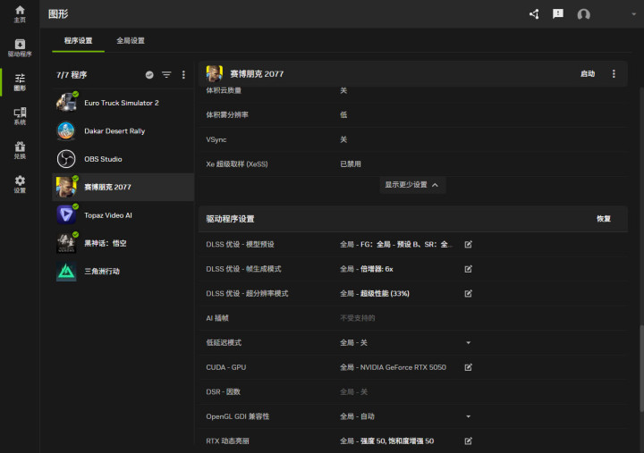 再为各人配置一下流戏适配,确保系数3A大作皆能支捏。配置完全局参数后,回到DLSS优设页面,找到“圭臬列表”选项,点击参加,这里会露馅电脑中系数已装配的、支捏DLSS的游戏,对于未露馅的游戏,点击“添加圭臬”,找到游戏的装配目次,选中游戏启动圭臬,添加到列表中。添加完成后,选中每一款游戏,点击“单独配置”,说明游戏的DLSS样貌配置为“随从全局”,这么全局的6X帧生成配置就会应用到每一款游戏中,无须一一游戏单独配置。这里要预防,部分老款3A大作可能需要更新游戏补丁才能支捏DLSS 4.5,各人不错在游戏的官方网站或Steam、Epic平台上检查更新,确保游戏支捏DLSS 4.5,不然无法开启6X帧生成。纵脱 2026 岁首,全球已有跳动 250款游戏和应用支捏DLSS 4时期 。该时期随GeForce RTX 50系列显卡推出,支捏多帧生成与色泽重建,部分新游戏已升级支捏DLSS 4.5。