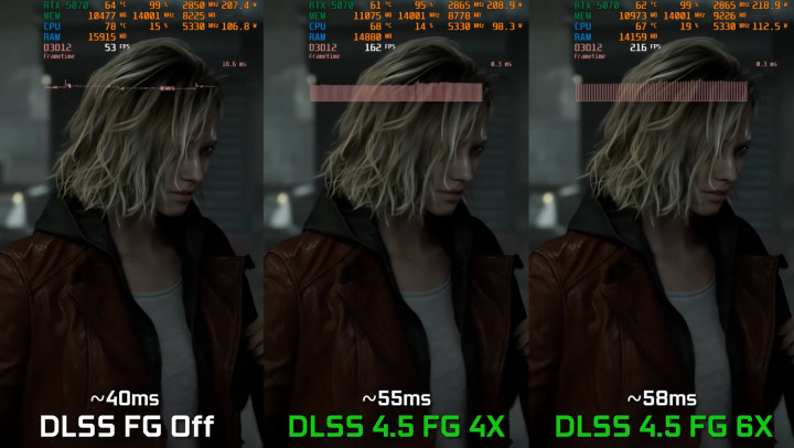 第三款测试游戏是《生化危险:安魂曲》,DLSS关闭样貌下在2K最高画质、开启色泽跟踪的配置下,平均帧率仅为55帧,最低帧率不及50帧,画面卡顿十分昭彰,尤其是在调治院的阴雨走廊、浣熊市的遗残废地等场景中,帧率波动较大,操作延伸也比较高,况兼画面中会出现昭彰的噪点,影响恐怖氛围的营造,即使是微星RTX 5070 12G World of Warcraft MIDNIGHT VOID EDITION OC虚空OC联名款显卡,在原生渲染样貌下,也难以畅达把握旅途跟踪全开的场景,这也能看长进径跟踪对显卡性能的强大破钞。开启DLSS 4X帧生成后,帧率得回了质的陶冶,平均帧率达到了160帧,最低帧率150帧以上,画面卡顿表象完全消失,操作反映变得愈加贤达,画面中的噪点也被有用扼制,旅途跟踪带来的细致光影后果得以圆善呈现,调治院的阴影、墙壁的反射皆愈加传神,恐怖氛围也愈加浓厚。