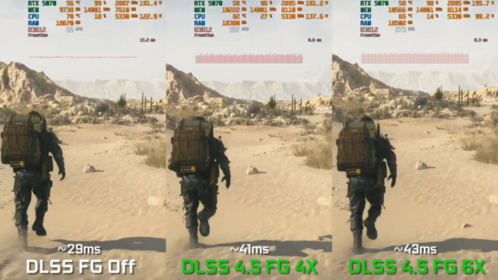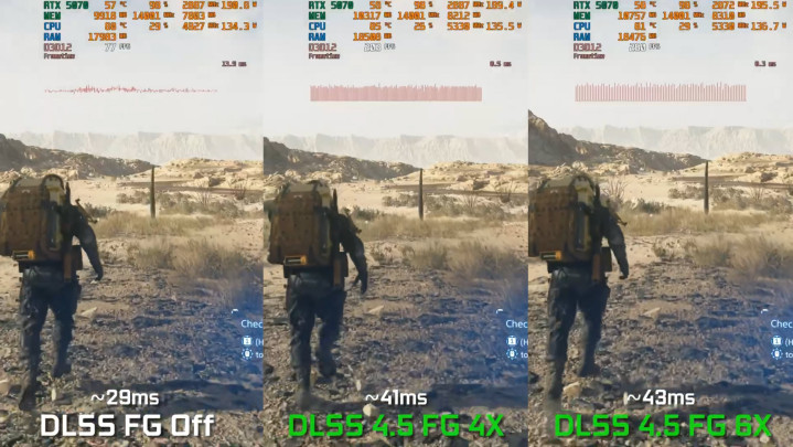 开启DLSS 6X帧生成后,《吃亏搁浅2》的平均帧坦爽接飙升至260帧,远超2K 144Hz露馅器的刷新率,最低帧率也能踏果真250帧以上,画面丝滑到离谱,莫得任何卡顿和掉帧表象,即使是在复杂的地形、多扮装同屏的场景中,帧率也能保捏踏实。同期,画面画质莫得任何损失,AI生成的画面细节与原生画面圆善邻接,莫得出现伪影、暧昧等问题,扮装的衣物舞动、沙粒的流动后果皆能了了呈现,色泽跟踪带来的光影后果也愈加传神,让玩家或者全身心千里浸在小岛秀夫打造的绽开寰宇中。值得一提的是,开启6X帧生成后,游戏的操作延伸也适度得十分出色,搭配Reflex低延伸时期,玩起来简直莫得延伸感,尤其是在战斗场景中,操作反映愈加贤达,这也离不开微星RTX 5070 12G World of Warcraft MIDNIGHT VOID EDITION OC虚空OC联名款显卡的壮健性能支捏。
