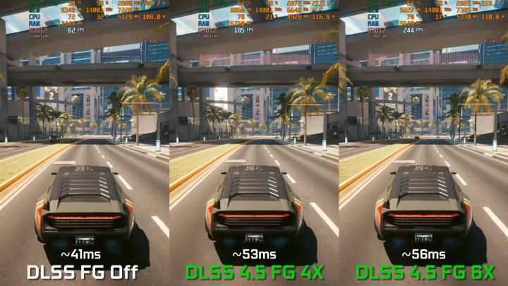 接下来参加实测重要,系数测试均基于微星RTX 5070 12G World of Warcraft MIDNIGHT VOID EDITION OC虚空OC联名款显卡,搭配Intel Ultra7 265KF处理器、32GB DDR5 6400MHz内存、1TB PCIe 4.0固态硬盘,露馅器为2K 144Hz,游戏均配置为最高画质,开启色泽跟踪(支捏旅途跟踪的游戏开启旅途跟踪),永别测试DLSS关闭、DLSS 4X帧生成、DLSS 6X帧生成三种样貌下的帧率施展,所罕有据均为MSI Afterburner监控的平均帧率,保证实测数据的真确性和参考性,率先测试的是《赛博一又克2077》,这款游戏号称硬件性能的“试金石”,尤其是开启旅途跟踪后,对显卡性能的条目极高,亦然测试DLSS 4.5 6X帧生成后果的最好游戏之一。
