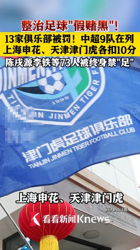 13家办事俱乐部被扣除2026赛季联赛积分并罚金,其中中超亚军上海申花、天津津门虎被重罚,各扣10分、罚金100万元。