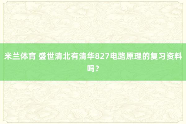 米兰体育 盛世清北有清华827电路原理的复习资料吗?