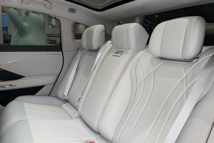 铂智7的外不雅上赓续了丰田一贯的千里稳大气,同期融入了最新的电动化运筹帷幄言语,自带旗舰车型的气场。锤头鲨运筹帷幄2.0前脸搭配封锁式格栅,视觉要点压低,显得颠倒把稳。溜背造型不仅进步了颜值,还能优化风阻,搭配大尺寸轮毂,兼顾了清爽感和实用性。车身长5130mm,宽1965mm,高1506mm/1491mm,让它成为妥妥的中大型纯电轿车。再加上3020mm的轴距,铂智 7 的车内空间展现得相配塌实,绝对撑得起 “大型旗舰” 的定位。前排座椅领有可以的革新鸿沟,即便形体较高的驾乘者调解好坐姿,头部仍有宽裕余量,不会有短促感。后排空间相通充裕,坐下三个成年东说念主也不会以为拥堵。储物空间的运筹帷幄也贴合宽阔,门板储物槽、中控台下方储物格容量可不雅,手机、水杯、随身包等小物件都能纯粹归置,扶手箱深度豪阔,可容纳纸巾、充电线等杂物,细节处考量周至,餍足了家庭用户对实用性的基本需求。